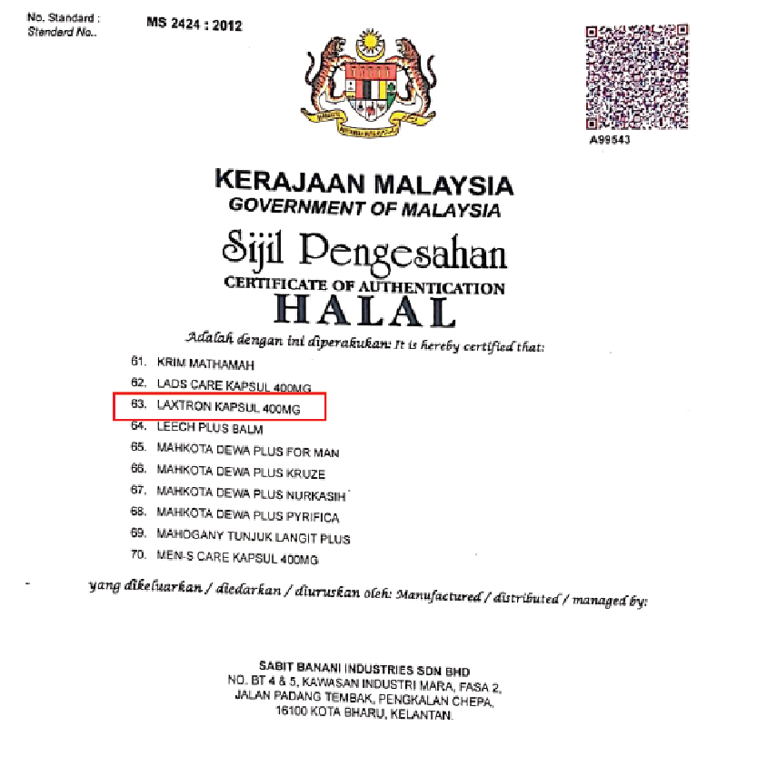 Dihasilkan Oleh Kilang Bertaraf GMP Halal & Mempunyai Kelulusan Pihak Kementerian Kesihatan.