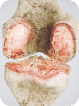 Tulang rawan sudah mula haus. Ini terjadi kerana cairan yang berkurang tidak dirawat, geseran yang terjadi lama kelamaan menyebabkan sendi lutut semakin haus.
