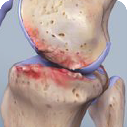 Tahap paling parah. Dari gambaran xray. tulang peha dan tulang betis sudah bertemu antara satu sama lain. Tulang rawan sudah tiada lagi. Pada keadaan ini, amat susah untuk berjalan.