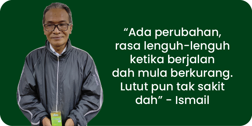 Bagi pesakit yang mengalami masalah osteoarthritis, sendi dan lutut pesakit dinasihatkan ambil 2 biji pagi dan 1 biji malam.